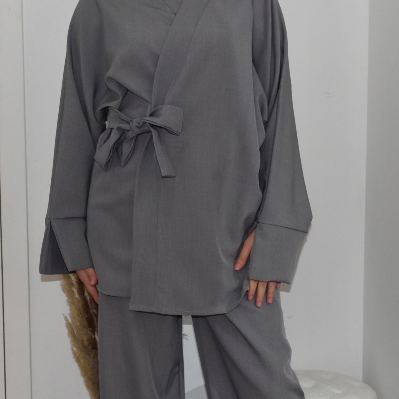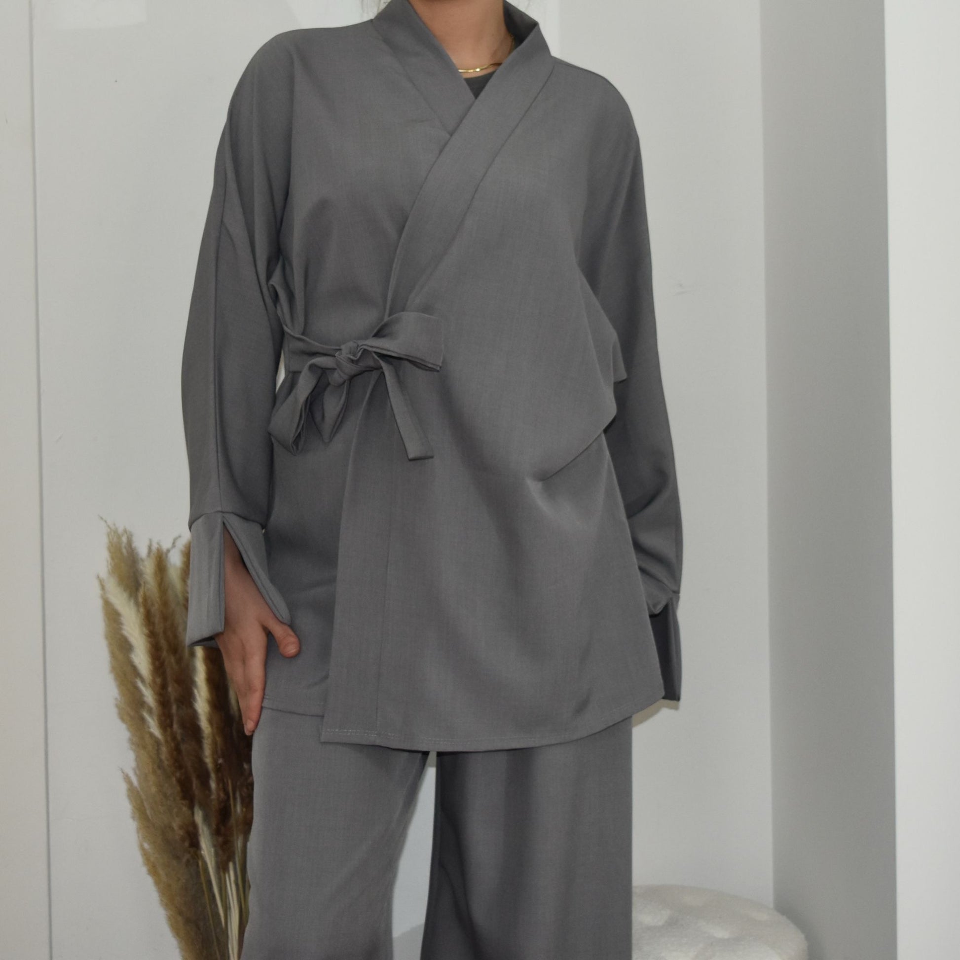 De Inaya Set combineert moeiteloos eenvoud met elegantie. Deze tweedelige set bestaat uit een soepelvallende wrap top met strikdetail en een comfortabele rechte broek. Gemaakt van een luchtige stof die heerlijk aanvoelt op de huid. De Inaya Set is perfect voor zowel casual als nette gelegenheden, en beschikbaar in meerdere kleuren.